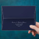This simple yet elegant navy blue and silver winter wedding envelope in a 5x7 format exudes modern luxury and chic style. Featuring a return address, a monogram at the top flap, and beautiful, sophisticated snowflakes, it adds a perfect touch of winter elegance to your wedding stationery.