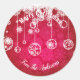 Celebrate the most wonderful time of the year and personalise your Christmas gifts during the holiday season in the most convenient way with Christmas stickers. Featuring White Merry Christmas text, red white snowflakes and Christmas balls set on red background, this this personalised Sticker is perfect for adding a custom touch to your party favours, decorating envelopes, labelling gifts or in many other ways. Click the "Customise" button to add your own name, arrange or delete the text, change the font style, font colour and font size.