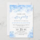 Elegant blue watercolor winter snowflake Christmas happily ever after wedding party invitation.