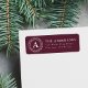 Elegant holiday address labels featuring your monogram initial encircled by a wreath of white snowflakes and pine branches on a berry purple background. Personalize the labels by adding your name and return address in classic white lettering. The monogram snowflake address labels are perfect to use with your holiday cards, holiday party invites, and everyday correspondence.