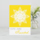 Snowflake yellow, white, grey winter wedding invitation, featuring a white snowflake on yellow background. A perfect choice of a modern design for classy winter December weddings. Some elements courtesy of vectorportal.com. Colour scheme: Yellow, white, grey/grey.