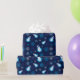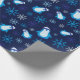 Snowflakes and Winter Penguins Dark Navy Seamless Wrapping Paper