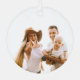 Personalised baby's first Christmas ornaments feature elegant trendy baby name script and snowflakes in light grey, black and white, optional couple photo on the back, modern and simple.