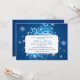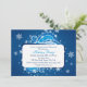 This crisp, blue and white flat invitation is a vision of winter wonderland. Well-suited for any winter-theme celebration. Delicate snowflakes and swirls float around the white panel that holds your personalisation.