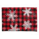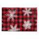 Snowflakes on a Buffalo plaid background.