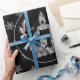 Snowflakes Candles Holly Black Silver Christmas Wrapping Paper