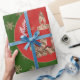 Snowflakes Candles Holly Red and Green and Gold Christmas Gift Wrapping Paper with custom name and text, Elegant Holiday Season Gift Wrap with snowflake pattern
