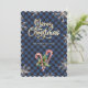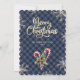 Snowflakes Candy Cane Blue Plaid Christmas Card