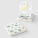The coasters are gorgeous, a quality feel and heavy weight. They look like a precious archeological find. A rustic stone juxtaposed with a modern floral black and white print. I like the way the print goes slightly imperfect on the cut stone edges giving them a kind-of natural beauty.