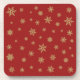 A snowflake vector digital design with gold snowflakes on a dark red background.
