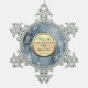 Snowflakes on blue background with gold diamond 10th wedding anniversary ornament.