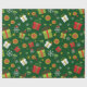 Wrap your holiday gifts with this seasonal wrapping paper featuring snowflakes, gift box, cup cakes, stars and ornaments in green background. Your presents will look extra jolly under the tree.