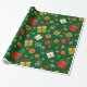 Snowflakes Gift box Cupcakes Stars Green Christmas Wrapping Paper