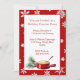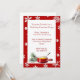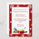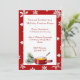 Festive fondue holiday party invitation done in a red background, with white snowflakes. A white text area is decorated, at the bottom, with graphics of a pine branch and a fondue pot. Text in red is fully customisable to suit your party needs. Great party idea for a cold night.