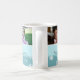Merry Christmas grandma custom photo mug in stylish shades of light blue and white in a delicate snowflake pattern with customisable text and photo, perfect as a holiday gift.
