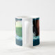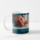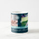 Merry Christmas Mum custom photo mug in stylish shades of teal blue and turquoise in a delicate snowflake pattern with customisable text and photo, perfect as a holiday gift.