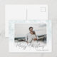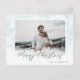 Modern, simple and elegant Merry Christmas One Photo Holiday Postcard with a snowflakes overlay. Icy blue marble background with white snowflakes and the same on the back. Easily personalise this Christmas card with your own photo and the text.