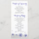 Snowflakes in blue and silver grey stars on white adorn this stylish contemporary winter wedding ceremony and party program template. This modern customisable design displays lovely blue snowflakes with white outline and is great for a Christmas or December winter wedding.