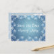White and blue snowflakes on a blue twinkling stars and snowy background Wedding Save the date Postcard. There are matching items such as postage, sticker, label, magnet. Just check my store.