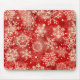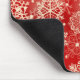 Snowflakes pattern. Seamless pattern with fluffy white snowflakes on a red background.