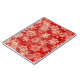 Snowflakes pattern. Seamless pattern with fluffy white snowflakes on a red background.