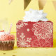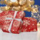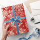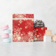 Snowflakes pattern. Seamless pattern with fluffy white snowflakes on a red background.