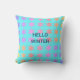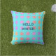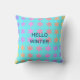 Snowflakes Patterns Hello Winter Typography Blue Cushion