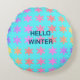 Snowflakes Patterns Hello Winter Typography Blue Round Cushion