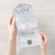 All in one winter wedding invitation featuring snowflakes on a winter frost background. The invitation includes a perforated RSVP card that’s can be individually addressed or left blank for you to handwrite your guest's address details. Designed by Thisisnotme©