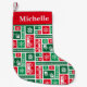 This Christmas stocking has a Modern Geometric Christmas Snowflakes Pattern in red and green colours. You can make the pattern smaller or larger on this stocking. Personalise the xmas stocking with your own name.