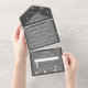 Snowflakes, Snow, grey, Winter Wonderland Wedding All in One Invitation. Tri-fold elegant, chic, unique, modern wedding invitations. Customise with your details. Order in time to avoid a disappointment.