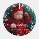Beautiful round glass Christmas ornament to celebrate your baby's first Christmas. Add a photo of your baby, boy or girl, and their name and the year. White snowflakes and stars are printed on your photo to give it a beautifully wintery feel. Snowflake and star themed first Christmas ornament in glass personalised with your baby's name.