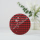 Festive snowing script Merry Christmas card with red buffalo plaid background. This card doubles as a hanging ornament: it comes with a hole punch guide along the top at the back of the card. Punch out the hole with a hole punch and add pretty ribbon, rustic jute or colourful yarn before mailing them out.