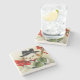 The coasters are gorgeous, a quality feel and heavy weight. They look like a precious archeological find. A rustic stone juxtaposed with a modern floral black and white print. I like the way the print goes slightly imperfect on the cut stone edges giving them a kind-of natural beauty.
