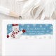 These cute Address labels, have a festive snowman waving happily. Wearing a red and white scarf and hat on a snowy background.