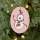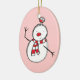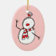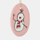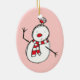 A cute snowman with a bird perched on his head and a red and white striped scarf. This adorable ornament is perfect as a gift for friends and family, or buy one for yourself.