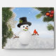 This winter holiday plaque features a snow scene with a snowman, Christmas tree branches, and a cardinal bird.   A plaque like this would be a thoughtful gift for anyone who loves the winter season and snowmen.