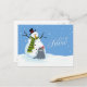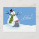 Cute cat themed Christmas postcard featuring a painting of a snowman with tree branch arms and a grey cat wearing a red hat. The words "Let it Snow" also appears in the design. Copyright © Lisa Marie Robinson. All Rights Reserved. It is illegal to use or duplicate this, or any of our images, without written permission.