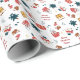 Personalised christmas gift wrapping paper, to which you can add a repeating to or from message. The design has a festive holiday pattern of snowman and christmas lights, snow topped christmas tree, cosy winter window and gift wrapped christmas present.