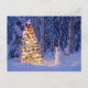 Snowman and Christmas Tree on a Winter Night Holiday Postcard