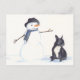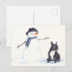 This postcard features a reproduction of my original watercolor painting of a snowman and french bulldog.