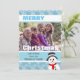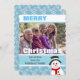 Christmas flat photo card with snowflakes on blue and cute snowman image. Personalise with your own photo and text. Click "customise it!" to reposition or resize your photo if required.