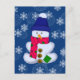 Snowman and snowflakes. Merry Christmas Holiday Postcard