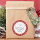 Festive red and gold "made especially for you " sticker featuring my lighthearted watercolor snowman holding a string of colourful holiday lights. Personalise text as preferred.