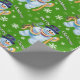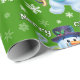 Snowman and tinsel Christmas wrapping paper in green. A wonderfully seasonal design featuring a fun snowman character. See my other Christmas characters on giftwrap and lots more products.