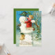 This snowman and his buddies are having a tonne of fun. This vintage Christmas print depicts a snowman playing with a cherub. He has Four Leafed Clovers in his hat.