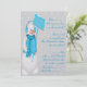Invitation with blue snowman print design verse reads:- Won't you come down our chimney tonight? You're invited to party all night, There'll be drinks & dinner plus other delights! .......... o'clock on the ......th of December You’re invited to our home for a night to remember