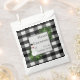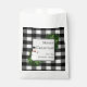 Add rustic charm to your holiday celebration with this festive Black and White Snowman Buffalo Plaid Party Favour Bag. Featuring an adorable snowman in a classic top hat and scarf, set against bold buffalo plaid and gingham pattern accents. A cheerful Merry Christmas greeting is displayed in playful festive typography, with space to personalise it with your family name. Accented with seasonal holiday pine botanicals, this design brings warmth and whimsy to your gift giving.