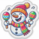 A joyful snowman dressed in a colourful scarf and beanie holds maracas, bringing festive cheer. With a bright smile, it embodies the spirit of Christmas, evoking joy and celebration.