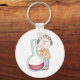 A snowman character checking the temperature on a large thermometer. This design looks really effective on this Keychain